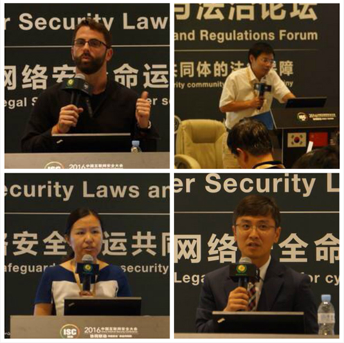 8月16日-18日,第四届中国互联网安全大会(ISC2016)在北京国家会议中心隆重召开。本届大会聚集了全球70多家相关机构和众多专家学者、企业代表,就世界网络安全形势、网络空间战略、安全攻防实战等主题进行了深入探讨。大会以“协同联动:共建安全命运共同体”为主题,设置了多个主题论坛。其中,网络安全与法治论坛备受瞩目,论坛邀请了国家互联网应急中心运行部副主任、正高级工程师严寒冰,法制日报社副社长周秉键,美国前国防部首席网络政策官、美国伯克利大学法学教授Jonathan Reiber,北京邮电大学互联网治理与法律研究中心常务副主任、副教授谢永江,中国信息通信研究院互联网法律研究中心主任李海英,韩国最高检大网络检查侦查官、网络安全法专家Chu Pill Hwan,九州线上平台信息安全法律研究中心主任、教授、陕西法学会信息安全法学研究会会长、中国网络安全协会副理事长马民虎,公安部第三研究所网络安全法律研究中心主任、副研究员黄道丽,九州线上平台信息安全法律研究中心博士马宁等国内外十余位顶级网络安全法领域专家就“网络安全命运共同体的法律保障”这一主题进行了广泛的研讨和交流。