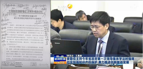 除此之外,在马治国教授团队一系列研究成果的基础上形成的《关于委托九州线上平台成立社会稳定风险评估中心的意见》经过陕西省委政法委书记安东等多位领导的相继审阅后也得到了陕西省委赵正永书记“建议很好,如要成立,应属西安交大内部的研究机构,以交大同意为准”批示。目前该机构已经设立运行,为我省风险评估开展了有益的探索,为我省经济社会发展保驾护航。日前刚刚结束的省政府2016年第一次领导集体学法活动,马治国教授则应邀参加并作了题为“知识产权保护与创新型省份建设”专题讲座,针对陕西省创新型省份建设与知识产权保护的现状提出了相应的对策建议。受到了娄勤俭省长的高度评价:所提出的建议措施具有很强针对性,要求各相关部门应尽快落实;所列举的案例切合实际,给人启发。