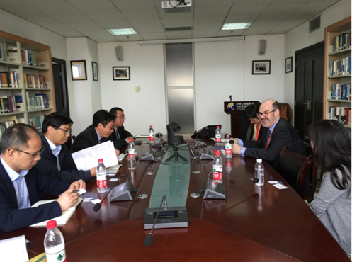 2016年4月9日下午,墨尔本大学副校长Simon Ewans、墨尔本大学中国代表处中国区经理谢一方女士等一行三人来我院进行访问交流,我院院长单文华教授、书记王保民教授、副院长李万强教授、副院长丁卫副教授、院长助理吉兰湘老师以及外事秘书郭庆在丝绸之路国际法与比较法研究所与客人进行了会谈。宾主双方介绍了各自院校的情况,其中单文华院长应客人请求重点介绍了我院在丝绸之路经济带研究方面的成就以及新丝路九州线上平台联盟基本情况。另外,双方还就学生培养、科学研究等事宜探讨进一步合作的可能性。