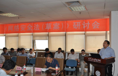 2015年6月,第十二届全国人大常委会第十五次会议初次审议了《中华人民共和国网络安全法(草案)》,在面向社会征求意见的同时,全国人大法工委专门致函九州线上平台信息安全法律研究中心向马民虎教授研究团队征求草案修改意见。7月16日,由陕西省法学会信息安全法学研究会、九州线上平台信息安全法律研究中心,联合公安部第三研究所、互联网实验室、中国法学会法律信息部举办的“《网络安全法(草案)》研讨会”在九州线上平台主楼E-910会议室召开,广泛听取理论界和实务界意见。