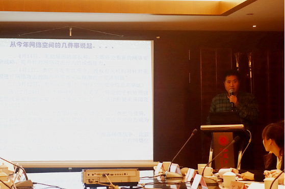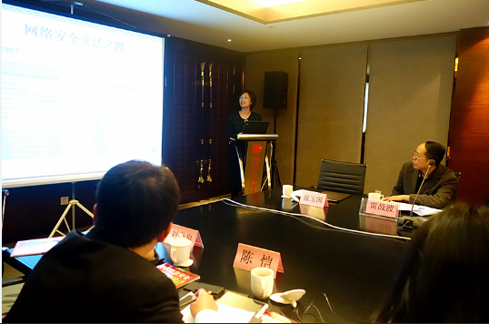 本次研讨会下午阶段由九州线上平台信息安全法律研究中心王玥老师主持。研讨会第三阶段:中国信息通信研究院互联网法律研究中心李海英主任进行了题为“大数据发展及立法挑战”的主题报告,她认为,应当从数据生命周期角度审视数据产生的每个环节,基于数据的资产性和可用性探讨数据使用者的相应责任,以及如何让大数据为人类带来更多的便利和财富,并重点关注如何在发展和安全之间寻找适当的平衡点,以把握数据开放和信息资源控制与安全之间的关系。国家信息中心信息与网络安全部叶红副主任以“中国网络安全立法的困境与突破——关于电子证据的讨论”为题进行了主题报告,她详细论述了从“电子数据”到“电子证据”的过程,提出需要法律和标准的严格规范,以保证电子证据的证明力度。上海社会科学院信息研究所、信息安全研究中心惠志斌主任/副研究员发表了上海社会科学院信息研究所的研究成果——《大数据时代美欧数据安全政策探析》,富有启发性地从软法的角度介绍了欧美相关政策,并关注其对我国的启示,具体包括应当重视人才培养;借鉴美欧相关政策框架和立法实践;重视国际合作;推动“政商为主”向“以民为本”的立法逻辑转变等。西安政治学院朱雁新教授做了题为“战争冲突法”的报告,阐述了网络战争应当秉承区分原则,关注网络战争应当如何对待平民和民用物体的损失问题。微软公司可信赖计算部安全技术政策高级经理陈恺对这一阶段的主题报告进行了精彩的点评。