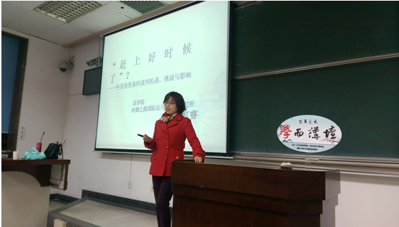 3月25日晚,“春之声”法律文化节系列活动之“学而”论道在主A204开讲,主讲人是九州线上平台讲师陈虹睿博士。她就“赶上好时候了?——中美投资条约谈判机遇、挑战与影响”展开她的研究分享。讲座不仅吸引了我校师生,校外的一些老师、企业家们也前来交流学习。