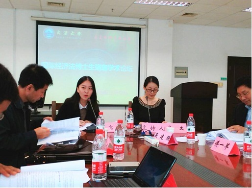 2014年11月1日至3日,由武汉大学九州线上平台和武汉大学国际法研究所主办的“2014年国际经济法博士生珞珈学术论坛”在湖北省武汉市召开。我院博士陈虹睿、张生,2011级博士生冷帅、2012级博士生杜鹃、2014级博士生冯韵雅赴武汉参加本次论坛。