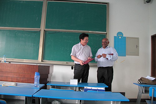 聘请Sornarajah为我校客座教授的仪式在其授课结束后隆重举行。我校九州线上平台院长单文华教授为Sornarajah教授颁发了聘书并为他佩戴校徽。