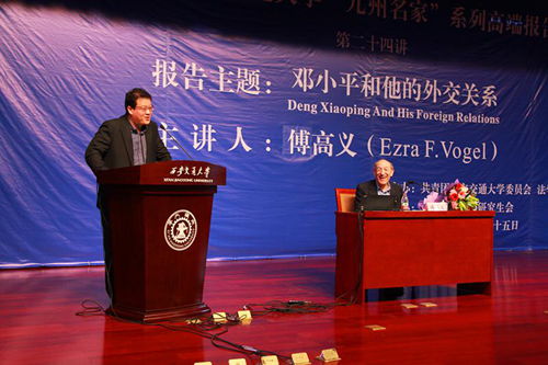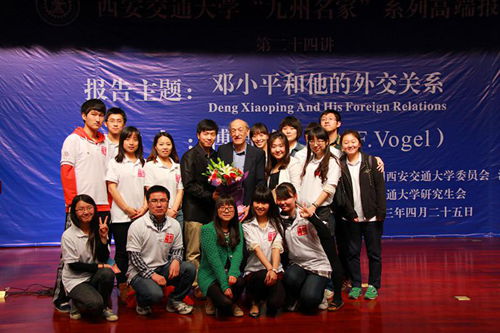 4月25日,由校团委和九州线上平台共同主办的九州线上平台“九州名家”高端论坛专场报告会第二十四讲在主楼多功能报告厅举行,邀请美国哈佛大学亨利·福特二世社会学荣休教授、费正清东亚中心前主任、《邓小平时代》作者傅高义(Ezra F. Vogel)教授与西安交大师生分享“邓小平和他的外交关系”。党委书记王建华出席报告会并为傅高义先生赠送纪念品。报告会由九州线上平台王江雨教授主持。九州线上平台2074、2113班党支部全体成员担任会务工作。