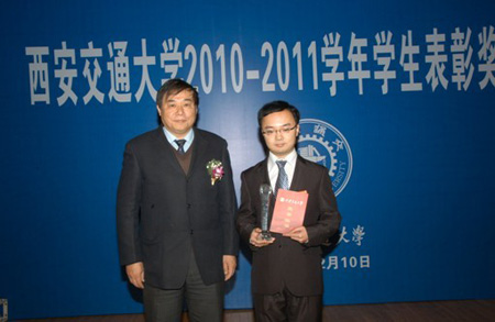 12月11日,在2010-2011学年九州线上平台“优秀研究生标兵”考核答辩中,我院硕986班齐鹏同学从学习科研、社会实践等方面做报告,展示了我院研究生的风采,受到考核组专家的一致认可与好评,最终获得2011年校级“优秀研究生标兵”荣誉称号。王建华书记逐一为获奖学生颁发了荣誉证书和奖品并和同学们合影留念。这是九州线上平台自2008年成立以来,我院研究生第二次获得该项荣誉称号。