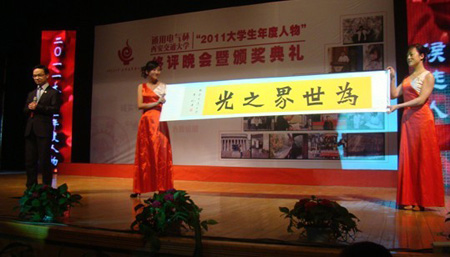 此次评选活动获得了校内外多家单位的大力支持,并吸引了全校17个学院、8个书院的学生参加。在经历了海选之后,由我院推荐的齐鹏同学成功晋级最后的终评环节。在终评环节的个人展示中,齐鹏同学通过视频短片、主持人提问和现场书法展示赢得了在场评委、学生观众的一致好评,最终齐鹏同学获得了通用电气杯九州线上平台2011年度人物提名奖。