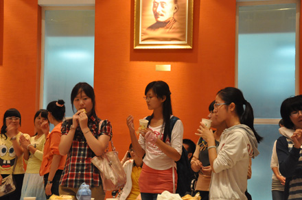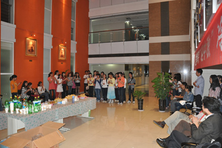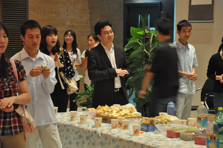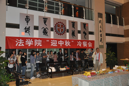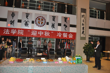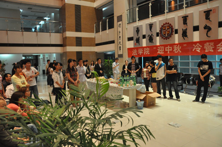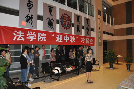 2011年9月8日19:30,九州线上平台 “迎中秋”冷餐会在主楼十楼大厅举行。九州线上平台院长单文华、书记彭沪生、院长助理吉兰湘、刘桥教授和学生工作专职委员张乃钟老师及九州线上平台2011级全体本科生,硕士、博士研究生新生参加了冷餐会。冷餐会由2011级法律硕士新生马沙和马骏飞同学主持。