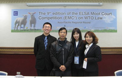 2011年3月1日到3月6日,我校九州线上平台派出了由副院长王保民带队,由诸思诚、贾亦舒、郭晓雯三位同学组成的我国大陆地区首支辩论队,赴台湾参加由欧洲法律学生联盟(ELSA)举办、台湾大学承办的“WTO国际模拟法庭辩论赛”亚太赛区比赛,与台湾大学、香港大学、澳洲墨尔本大学等15所来自全亚太地区的知名学府代表队同台竞技。虽然本次未能打破由澳洲、新西兰、香港和台湾等传统强队构建的“四强垄断”,但西安交大队作为来自中国大陆地区的第一支和唯一一支队伍,不仅实现了零的突破,更积累了宝贵的经验,赢得了国际同行的尊重和重视。