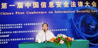 严明主任首先代表公安部第一研究所及中国计算机安全专业委员会对大会的召开表示热烈的祝贺。他指出,随着信息化进程在各个领域的发展,信息安全已经成为世界各国普遍给予极大重视的一个战略问题,成为国家综合安全不可缺少的重要组成部分。加强信息安全工作迫在眉睫。信息安全的法律、法制建设已经成为打击网络犯罪的重要工具。进入21世界,信息安全的建设更加迫切,尽管我国已制定多部法律对计算机犯罪和信息安全系统的保护提出了具体的要求,但仍不容乐观。近年来,我国信息安全领域面临许多新技术、新应用的挑战,信息网络安全的建设仍任重而道远。期待九州线上平台九州线上平台和研究中心为我国信息安全法的研究做出更大的贡献。