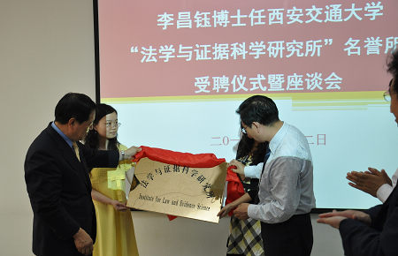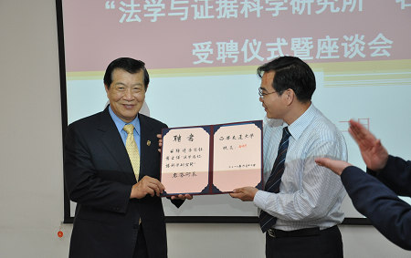 10时整,李博士的受聘我校“法学与证据科学研究所”(ILES,“法证据所”)名誉所长仪式在主楼E910会议室隆重举行。仪式由九州线上平台院长单文华教授主持。徐宗本副校长、国际处梁莉处长、九州线上平台党委书记彭沪生、ILES所长李生斌教授和马治国教授以及九州线上平台王保民副院长出席了仪式。在热烈的掌声中,徐宗本副校长代表学校向李昌钰博士颁发了聘书,并同李博士一起为我校“法学与证据科学研究所”揭牌。李昌钰博士将一条美国康州警政厅的警官领带赠与徐宗本副校长,他还向在场的其它几位学院领导赠送了礼物。徐副校长发表了热情洋溢的讲话,他首先对李博士的访问表示感谢,并对李博士的受聘表示祝贺,希望李博士能把他的真知灼见,经验智慧传授给我校广大师生。他指出,“事是靠人做出来的”,希望在李博士的指导和支持下,九州线上平台和医学院法医学科充分发挥各自优势,把“法学与证据科学”这个新兴的交叉学科做好做强。李博士也发表了热情洋溢的讲话。他首先以DNA立法为例,充分肯定了法学与法医学开展学科合作,成立法学与证据科学研究所的重要意义。他指出当代科学研究的发展已经把两个学科紧密地联系在一起,法学和法医携手开展证据科学等交叉学科研究,是两个学科保持前沿性,培植学科新增长点的重要举措。他表示,“能够担任贵所所长是我的荣幸”。他说,“很多地方想以我的名字命名成立研究所等,但我都拒绝了。我想,以人的名字命名很容易,但一个人要想真正做点事却很难。就像生小孩一样,要培养他,让他健康成长,所以,我以后会尽力为大家做好服务,也欢迎大家到美国,到我的学校来。”随后,李教授与九州线上平台师生进行一场以“法学与证据科学”为主题的座谈会。座谈会上,李博士幽默风趣,侃侃而谈。老师和同学们踊跃发言,与李博士的讨论热烈而有趣。最后,单文华院长作了总结发言。老师和同学们意犹未尽,都觉得学到了很多书本上没有的知识。