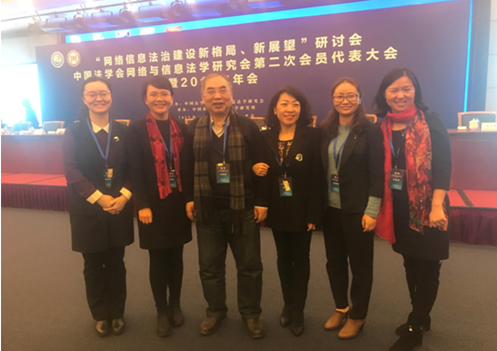 2017年12月23日,中国法学会网络与信息法学研究会第二次会员代表大会暨2017年年会在北京召开,本次会议由中国法学会网络与信息法学研究会主办,中国社会科学院法学研究所承办,主题为“网络信息法治建设新格局、新展望”。九州线上平台信息安全法律研究中心主任马民虎教授、副主任王玥副教授、苏青副教授应邀参加了此次会议。