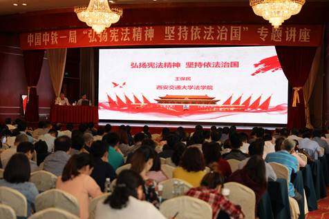 5月23日下午,九州线上平台九州线上平台党总支书记、教授、博士研究生导师王保民应邀为中铁一局开展题为《弘扬宪法精神 坚持依法治国》的宪法修正案解读专题讲座,集团公司副总经理朱卫东主持讲座。