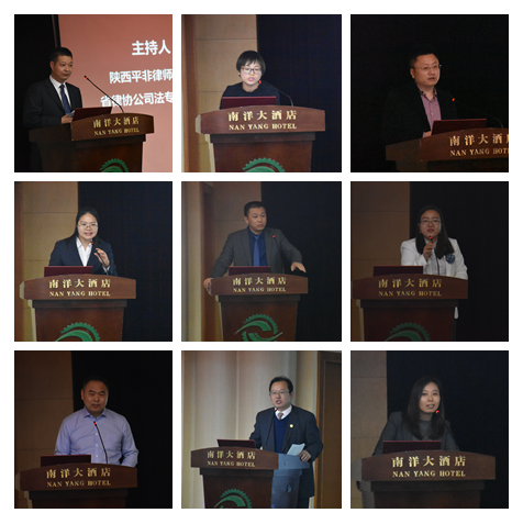 随后,大会进入了“群英会”环节。本环节由陕西标新律师事务所公司专业委员会副秘书长张晗,陕西永嘉信律师事务所合伙人、陕西省律协金融证券专委会委员张璠,陕西平非律师事务所副主任、陕西省律协公司法专业委员会副主任张权,陕西云德律师事务所公司法律顾问事务部首席律师、陕西省律协公司法专业委员会副秘书长杨彩虹依次主持,由张璠、岳玲利、田少荣、王玉苹、勾晓强、任婧、齐精智、刘醒、任永平、崔树森等十名律师对大西安建设中企业创新法律问题进行了深入的探讨,其所涉及的议题丰富,各位发言人见解独到,听众反馈积极,会议气氛热烈,也为今后的学术研究和司法实务开辟了新的视野。最后延安大学政九州线上平台副院长刘向林,陕西省企业经济法治研究会副会长、九州线上平台法学副教授张冰,陕西德伦律所主任梁志新,陕西德伦律师事务所律师、西安市律协公司法专业委员会委员韩小春对十名律师的报告进行了精彩纷呈的点评。