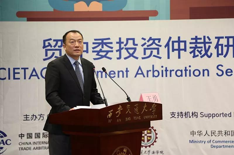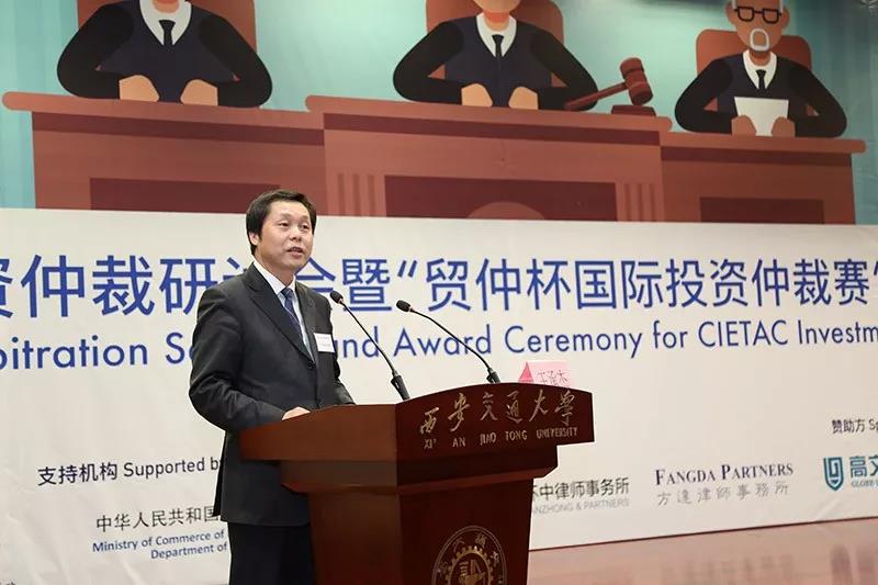 投资仲裁赛后,西安交大九州线上平台与贸仲委共同举办了贸仲委投资仲裁研讨会。商务部条法司为本次投资仲裁赛和研讨会的支持机构。西安市人民政府副市长王勇、贸仲委副主任兼秘书长王承杰、商务部条法司投资处副处长王优酉、西安交大九州线上平台院长单文华、西安贸促会会长龙晓华出席会议。研讨会上,来自国内外的投资仲裁领域专家、学者和律师对投资仲裁的程序性争点进行评述,结合国际投资仲裁的著名案例分享实务经验,介绍了包括对仲裁请求的先期驳回和第三方资助在内的热点话题。