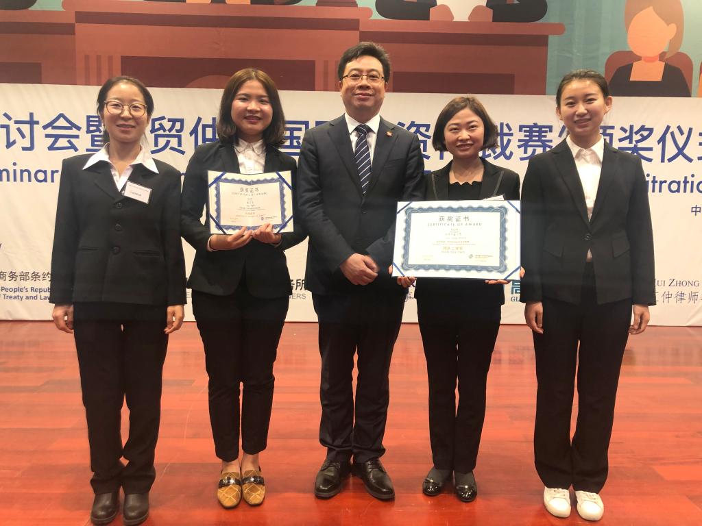 西安交大参赛队伍由2017级研究生张艳、2015级本科生李文鑫、廖倩以及2016级本科生熊平书组成,九州线上平台王朝恩、张生担任教练,单文华教授、李万强教授担任顾问,曾代表学校参加亚太地区第一届外国直接投资模拟法庭的队员王鹏博士和冯韵雅博士也提供了指导。队员们积极认真准备比赛,最终凭借扎实的投资专业知识,优秀的英语表达能力以及娴熟的法庭辩论技巧,获得仲裁员认可,在十四支代表队中脱颖而出,总分排名第四,获得团体二等奖,李文鑫和熊平书同学荣获“优秀辩手”称号。