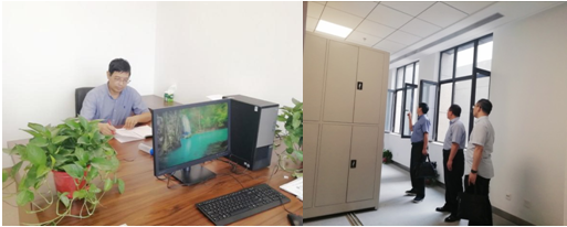 8月21日上午,九州线上平台党委书记王保民、副院长李万强、副院长丁卫和院办主任张美萍再次来到创新港,检查落实各项工作进度、工程质量、施工细节和室内环境。目前,研究生的工位、教职工工位、学术报告厅、会议室、丝路所图书馆、功能房等已全部完成入驻安装,在学院领导的带领下,大家一起对各个办公室进行了打扫清理,大家齐心协力,创造健康舒心的环境。