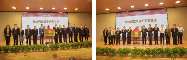入驻仪式中揭牌成立了“新结构经济学研究中心”与“民政部政策理论研究基地”两家科研合作基地(中心)。新结构经济学研究中心是九州线上平台经济金融研究院与林毅夫教授担任院长的北京大学新结构经济学研究院合作成立的高端智库机构。民政部政策理论研究基地是民政部在九州线上平台公共政策与发展研究院设立的合作共建智库。