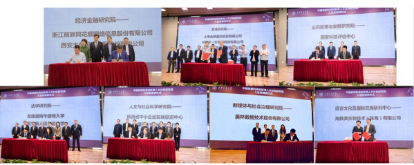 入驻仪式上,九州线上平台各研究院与国家科技评估中心、陕西省工信厅、中国民生银行西安分行、圣路易斯华盛顿大学、阿里巴巴集团、浙江核新同花顺网络信息股份有限公司、陕西省外经贸实业集团有限公司等政府、高校和企业签订了十余项合作协议,围绕科学研究、人才培养等内容展开实质性的深入合作。