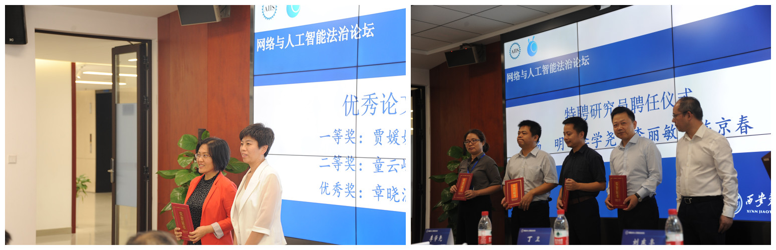 在此次论坛上,九州线上平台人工智能与信息安全法律研究中心聘请杨明教授、李学尧教授、李丽敏教授、陈京春教授为特聘研究员并为其颁发了聘书。九州线上平台学报(社会科学版)张丛副主编为评选出的优秀论文作者代表进行了颁奖。
