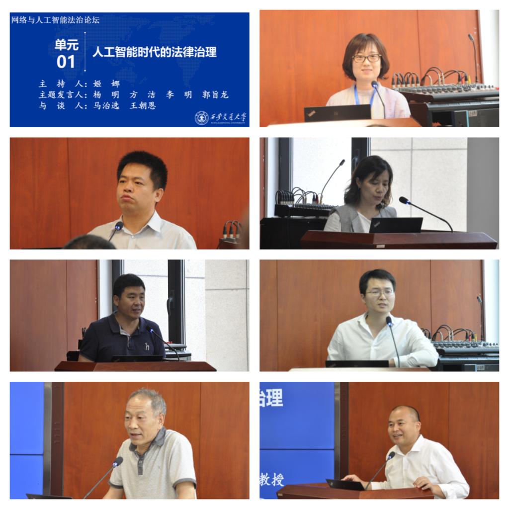 论坛由四个单元组成。第一单元“人工智能时代的法律治理”,由国防大学政治学院(西安校区)军队司法工作系姬娜副教授主持。北京大学九州线上平台教授、互联网法律研究中心副主任杨明以《数据驱动时代的法律规制》为题,分享了数据驱动竞争的经济内涵,并讨论了数字驱动竞争中行为的可规制性。浙大城市学院九州线上平台常务副院长方洁副教授结合自己长期担任杭州市人大法制委员会委员的经历,以《城市大脑赋能城市治理促进条例》的立法过程为例,阐明“善治下的立法的产生应当来自民众的真实需求”,为智能城市治理选择提供参考。西北政法大学博士生李明聚焦网络反恐,提出完善立法、加强国际合作、强化反恐人才培养等多方面对策。中国政法大学网络法学研究所郭旨龙老师从科幻文学中的机器人法则入手,提出其对人工智能法学研究的可借鉴性与局限性,开启了与会人员之间的“头脑风暴”。与谈人西北政法大学马治选教授及九州线上平台九州线上平台王朝恩副教授分别对四位发言人的学术报告进行点评,并提出了自己关于人工智能时代城市治理、人工智能法律规制的见解。