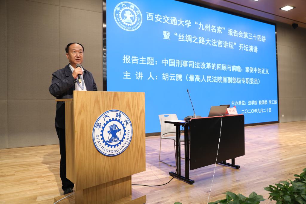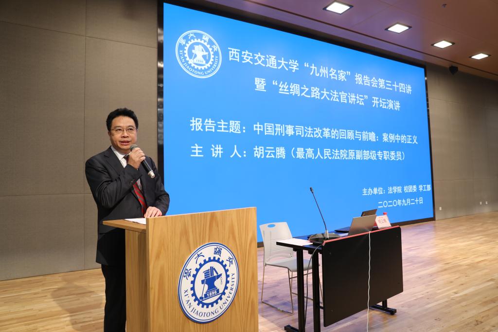 2020年9月20日,最高人民法院原副部级专职委员胡云腾大法官在中国西部科技创新港开坛论道,以《中国刑事司法改革的回顾与前瞻:案例中的正义》为题,畅谈中国司法改革40余年变化与成就。王树国校长在涵英楼11楼会见了胡云腾大法官。校党委副书记赵昌昌出席了报告会并致辞,校团委书记苏翔,陕西省律师协会会长韩永安,贸仲丝路中心秘书长助理蒋红梅,九州线上平台副院长李万强,九州线上平台副院长丁卫老师一并出席报告会。报告会由九州线上平台院长兼国际教育学院院长单文华主持。