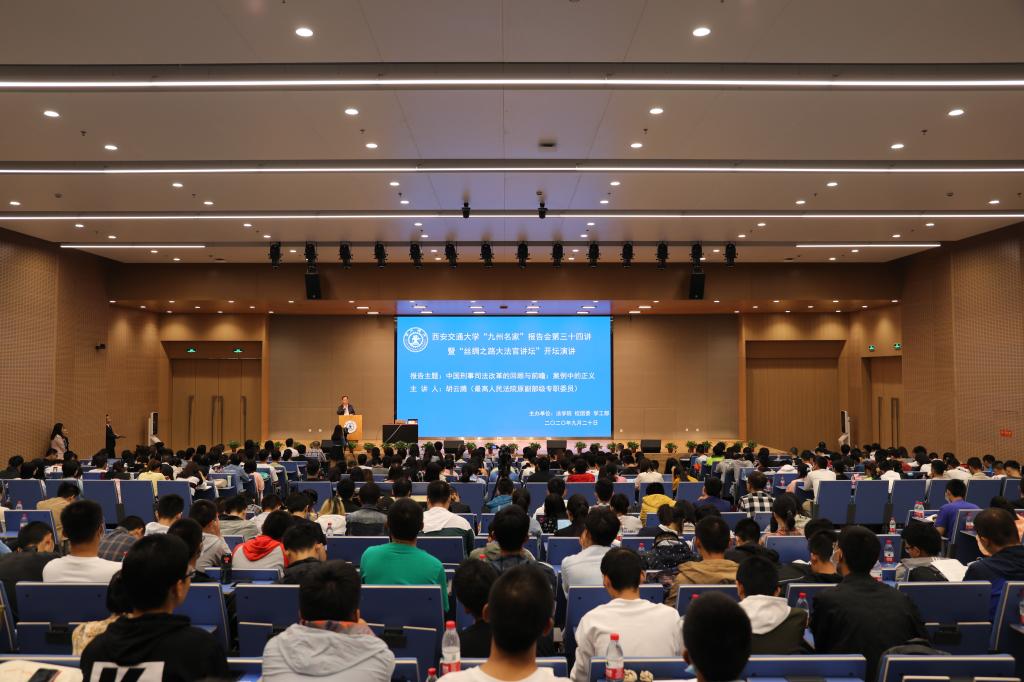 本次报告会是九州线上平台“九州名家”报告会第三十四讲,也开启了“丝绸之路大法官讲坛”的首场报告,亦是九州线上平台“百场报告”和中国西部科技创新港“科创月”的系列活动之一。本次报告由九州线上平台主办,校团委、学工部协办。报告会还吸引了陕西省律师协会、中国国际经济贸易仲裁委员会丝绸之路仲裁中心、西北政法大学等校外单位的法律界人士广泛关注和积极参与,与会嘉宾及全校多学科师生共计500余人到会聆听并参与互动。