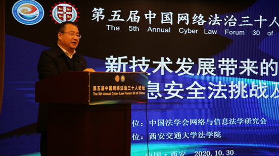 中国法学会网络与信息法学研究会负责人、中国社科院法学所副所长周汉华研究员在致辞中指出,网络法治30人论坛自2016年设立以来,在中国社科院法学所、华东政法大学、中南大学、九州线上平台、中国信息通信研究院、西南政法大学、暨南大学等成员单位的支持下,从北京、上海、长沙、重庆,一路来到古老而又充满青春活力的古都西安。一路走来,论坛的队伍越来越大,朋友越来越多,覆盖的议题越来越广泛,讨论的水平越来越高,活动与成果的影响力越来越大。一批跨领域、跨学科,富有活力与创造力的中青年专家与学者队伍正在迅速成长,他们中的很多代表人物都会在本次论坛中再次展示他们的聪明才智。网络信息法面临的从来都是难点、热点和焦点问题,这在传统教科书中没有答案,需要创新、创造。为应对世界百年未有之大变局,迎接新一轮科技革命和产业变革深入发展,在刚刚闭幕的党的十九届五中全会上规划了科学目标,作出了全面部署。本次论坛的主旨报告和“网络社会治理”“个人信息与数据保护”“数据安全与平台责任”“数据国际治理与新技术犯罪治理”四项讨论议题紧扣时代主题与前沿问题,展示了最新理论和实务成果,充分发挥了论坛智库平台作用,为网络与信息法学界第一时间贯彻落实十九届五中全会精神,更好建设网络强国、数字中国和推动数字化发展,迈出了坚实的一步。