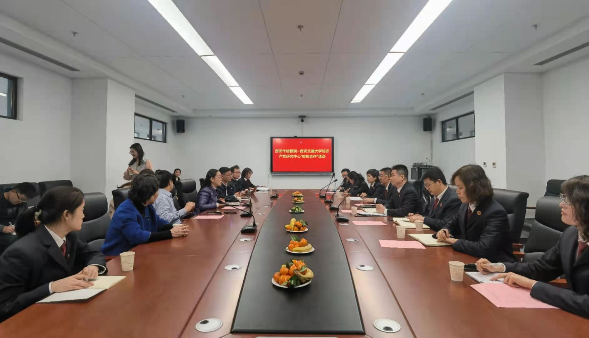随后双方与会人员围绕检察院的工作机制、知识产权人才培养制度、类案推广模式、战略合作协议等问题展开了深入研讨。双方一致认为,“检校合作”项目的开展,将开创并优化知识产权检察保护“西安模式”、推动西安市知识产权全链条保护,也将通过一系列理论研究和实践工作的开展,对知识产权专业人才的培养有所助益。