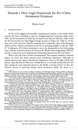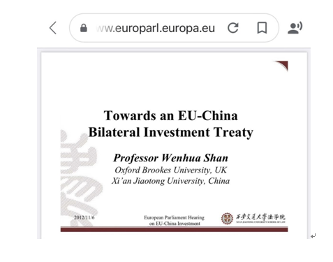 单文华教授最早关注并长期跟踪中欧投资关系法律问题的研究,是本领域的开拓者和奠基者。早在20多年前他在剑桥大学攻博博士学位期间,他就在《世界贸易学刊》上发表论文,聚焦这一课题,率先提出并论证了缔结中欧投资协定的必要性、可行性、主要内容与实现路径。他在剑桥大学博士学位论文基础上的牛津哈特出版社英文专著《中欧投资法律框架;:一种批判评估》是本领域的第一部学术专著。此外,2008年,他应欧洲理事会邀请主持完成了关于中欧投资新框架条约的研究工作;2012年,他应欧洲议会邀请参加“欧盟-中国投资政策”专题听证会,就中国和欧盟的双边投资条约问题在欧洲议会作专题法律报告。中欧投资条约谈判启动以后,他多次应我主谈部门邀请就谈判中的重要争议法律问题提供专家咨询意见,为中欧投资协定的谈判达成提供了直接的学术支持,做出了应有的贡献。