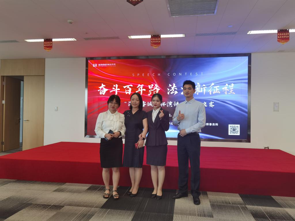 2021年6月19日,由陕西省法学会、陕西省律师协会主办,海普睿诚律师事务所承办的“奋斗百年路法治新征程”“海普睿诚”杯演讲比赛总决赛在海普睿诚律师事务所圆满落幕。我院周方教授担任领队,张雷奇、罗俊慧琳、徐芯语三位同学代表我校参与了此次决赛,并取得了优异的成绩。张雷奇、罗俊慧琳同学凭借《新时代,成为怎样的法律人》《于高处见法于低处见治》荣获三等奖,徐芯语同学凭借《法治新时代》荣获优秀奖。