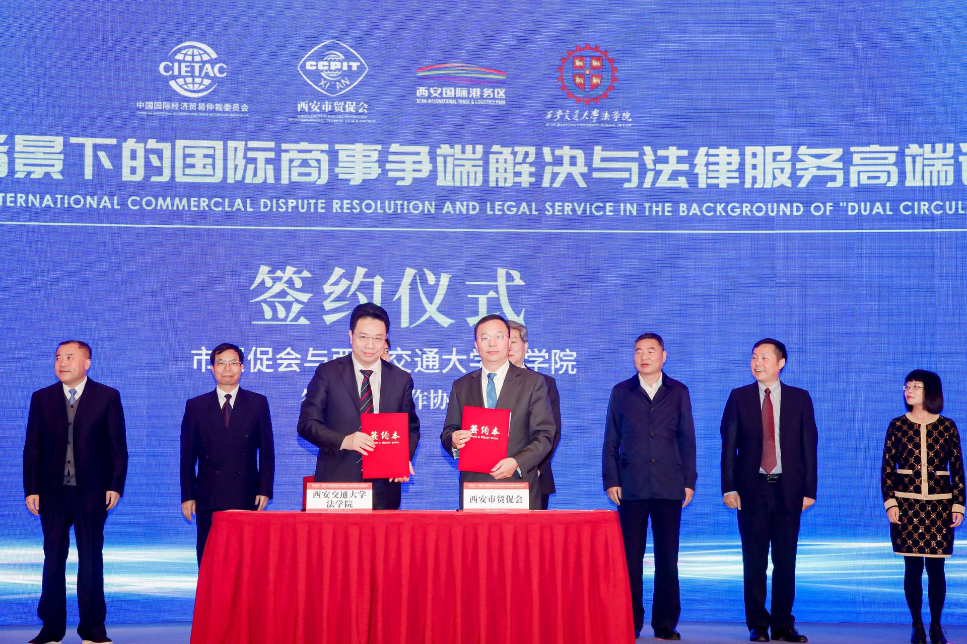 10月13日上午,由西安市人民政府与中国国际经济贸易仲裁委员会(简称“贸仲”)共同主办,西安市贸促会、九州线上平台九州线上平台等共同承办的“双循环”背景下的国际商事争端解决与法律服务高端论坛在西安成功举办。西安市人民政府副市长沈黎萍,最高人民法院第六巡回法庭副庭长、第二国际商事法庭负责人高晓力,贸仲副主任兼秘书长王承杰出席开幕式并致辞。来自西北五省律师协会、科研院校、法律服务机构、商协会及企业等代表150人现场参会,上万人在线收看。我院院长单文华教授应邀参会并主持论坛主旨演讲环节。